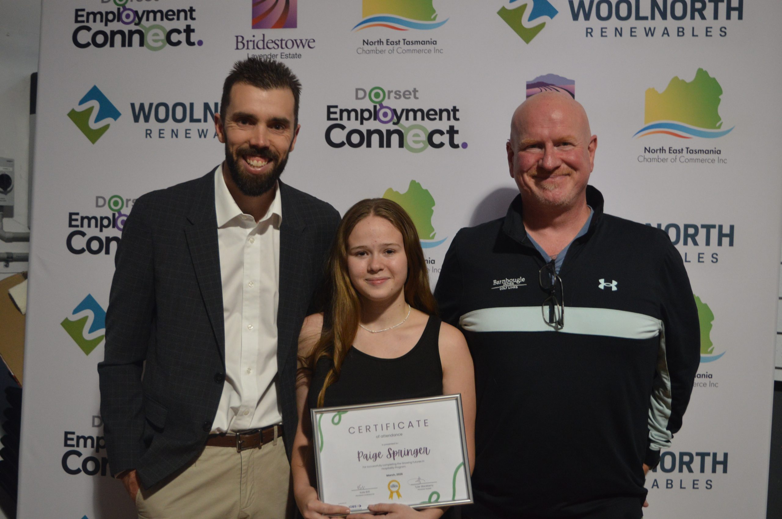 This initiative is proudly presented by Dorset Employment Connect, with principal partner North East Tasmania Chamber of Commerce, major sponsors Bridestowe Lavender Estate and Woolnorth Renewables, and other generous community sponsors.